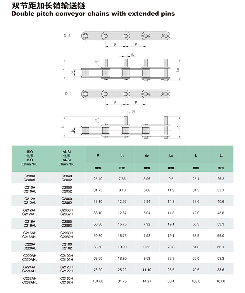 名称:双节距加长销输送链 说明: