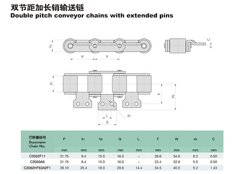 名称:双节距加长销输送链
