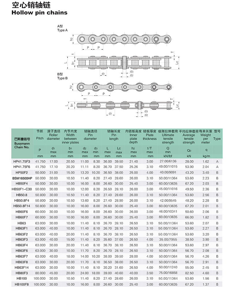 名称:空心销轴链