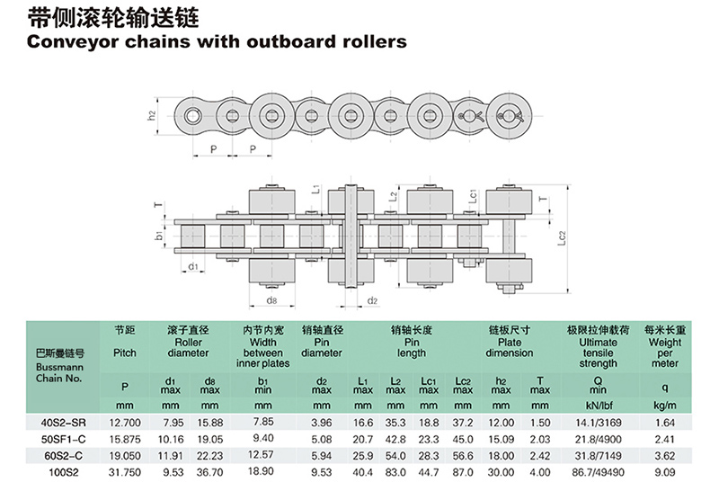 名称:带侧滚轮输送链