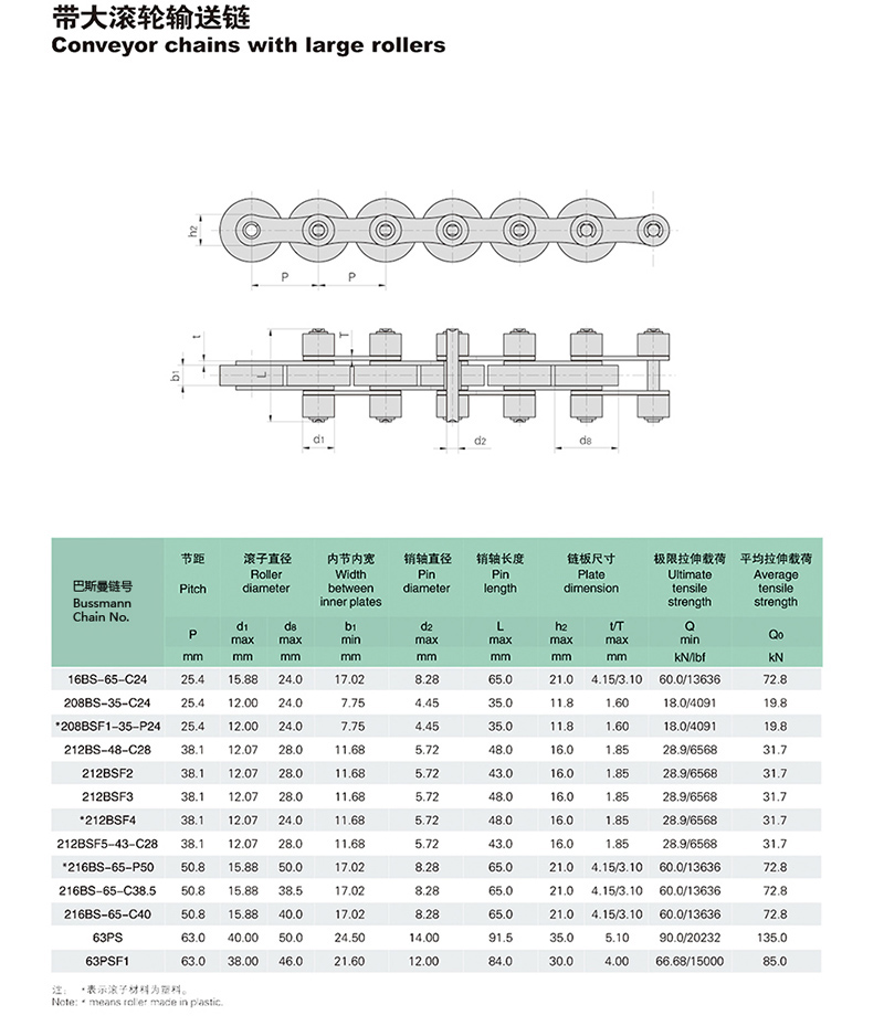 带大滚轮输送链