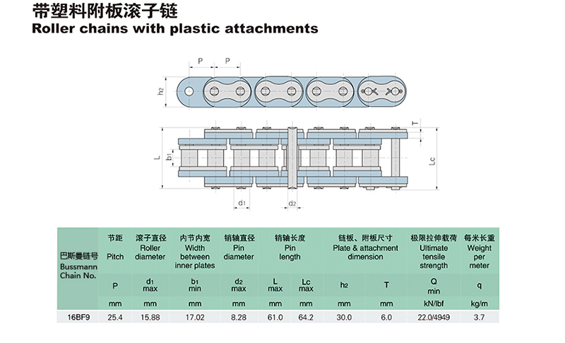 名称:带塑料附板滚子链