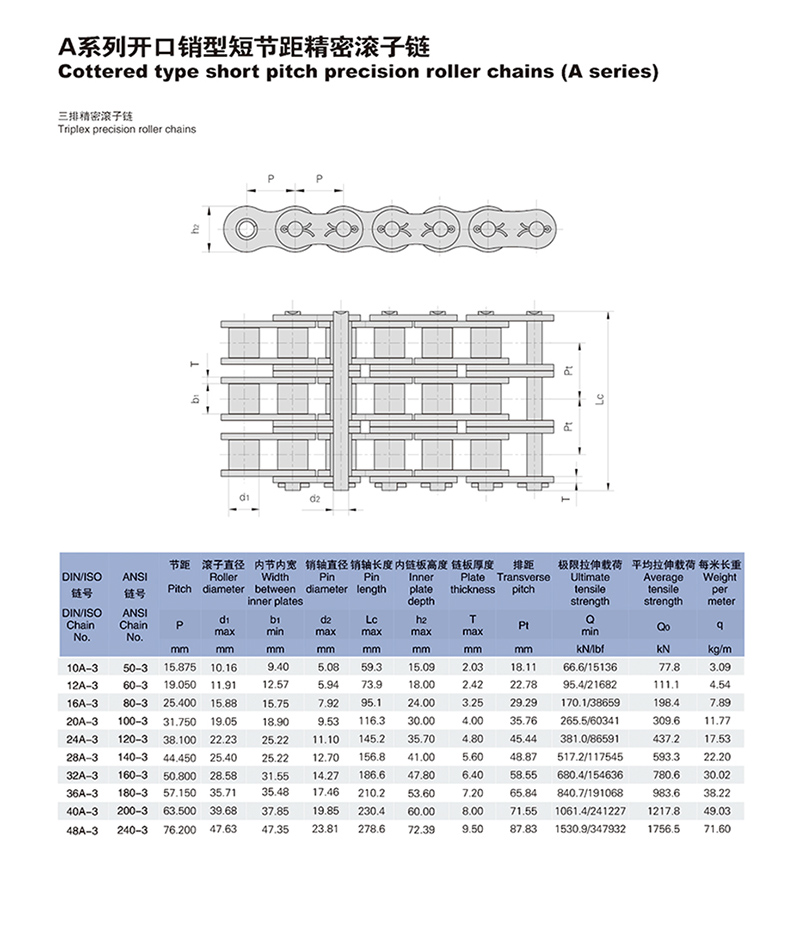 名称:三排精密滚子链