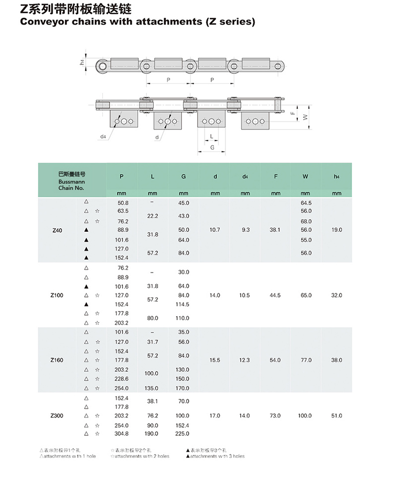 名称:Z系列带附板输送链