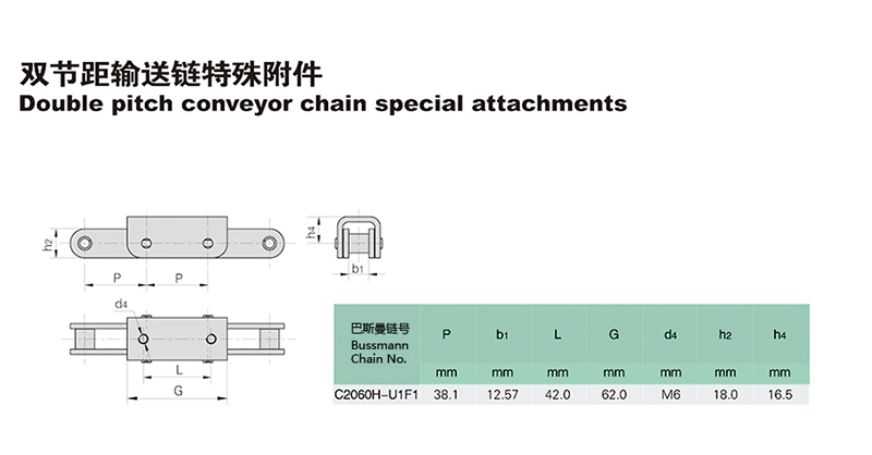 Name:Double pitch conveyor chain special attachments Explanation: ![]() |